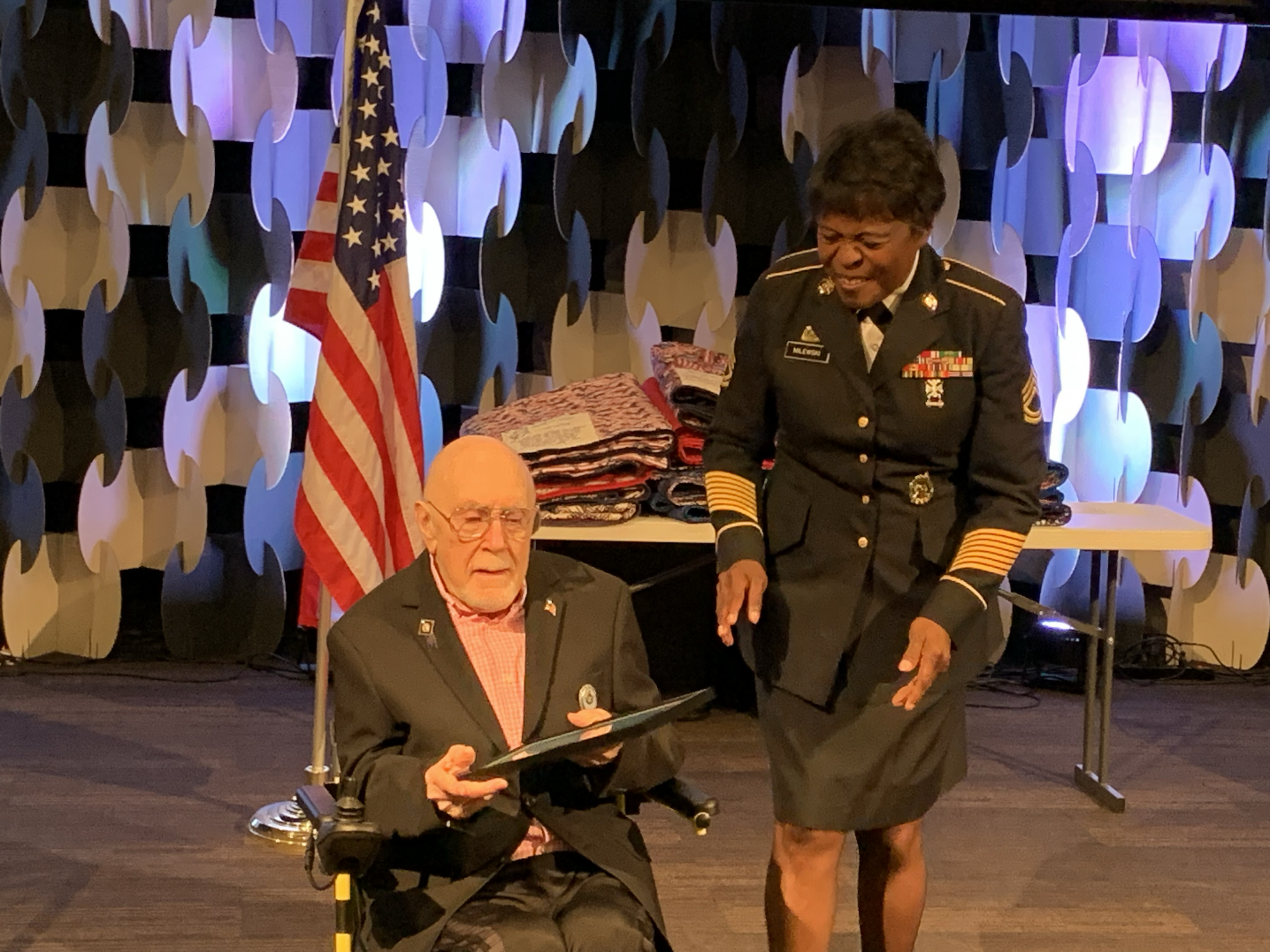 Quilt for Valor Presentation, Wally Nash, who served in the royal air force in 1955-1960, one of many veterans acknowledged for their military service.